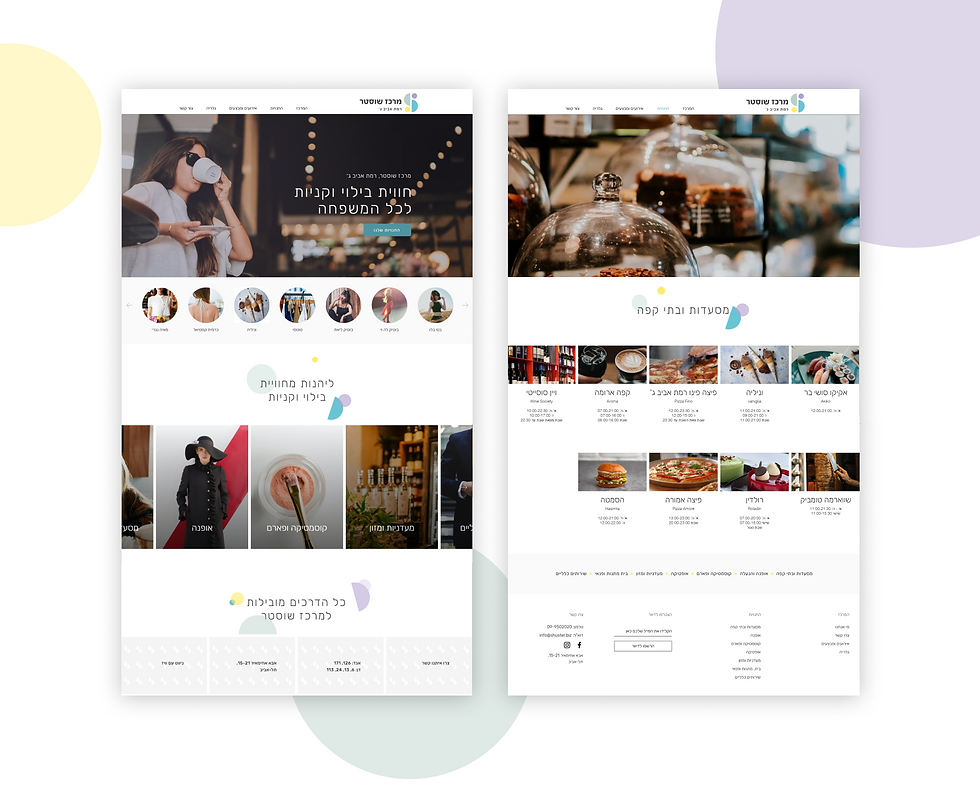 במסגרת פרויקט עבור מרכז שוסטר רמת אביב, ניהלתי את תהליך הקמת האתר משלב התכנון ועד上线, כולל UX, עיצוב, הקמה בויקס ותחזוקה שוטפת. האתר נבנה כדי להציג את המרכז כמרחב בילוי וקניות שכונתי, עם מידע עדכני על הפעילויות והחנויות, ולחזק את תחושת הקהילה סביבו.